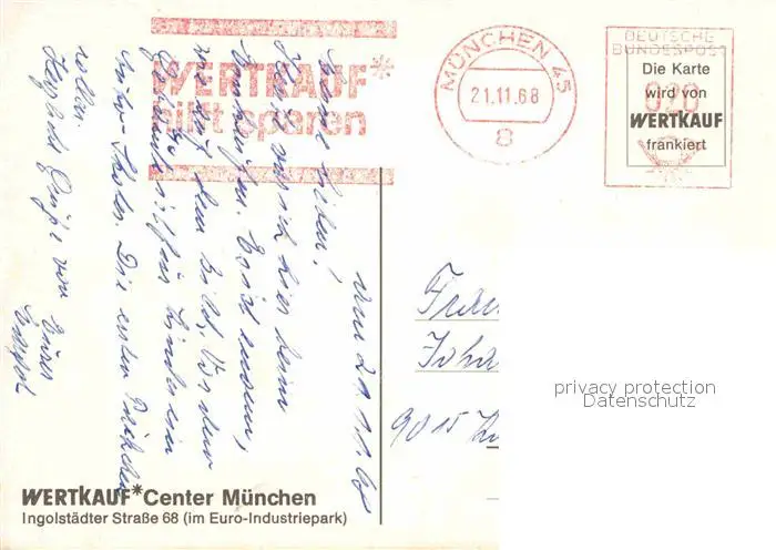 Muenchen Wertkauf Center Muenchen postalisch gelaufen 1968 Erhaltung siehe scans [KathaD81] Kathoren