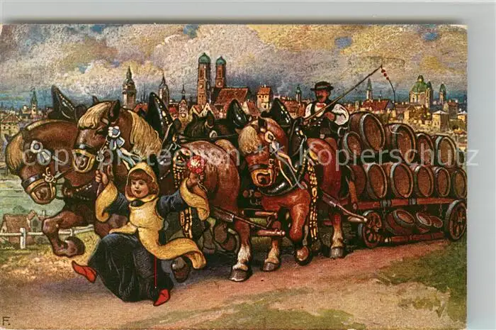 Muenchner_Kindl Brauereigespann Muenchner Kindl postalisch gelaufen 1922 Erhaltung siehe scans [PaolaD17] PaolPID1
