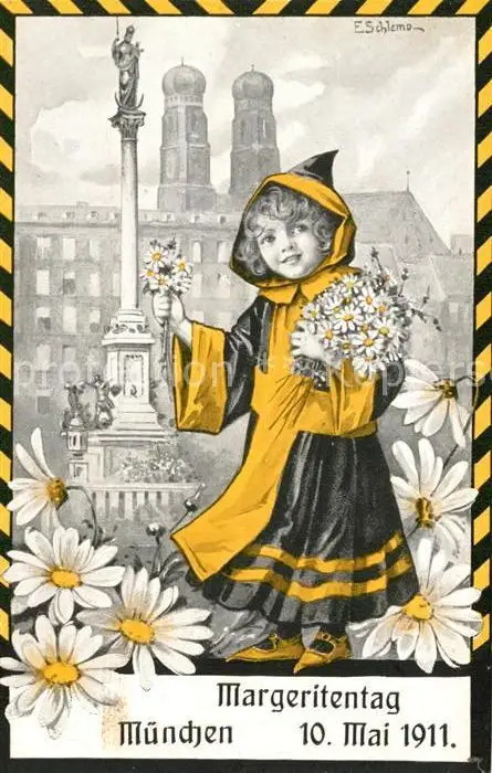 AK / Ansichtskarte Muenchner_Kindl Kuenstlerkarte E. Schlemo Margeritentag Muenchen 1911 Muenchner Kindl