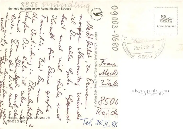 Muendling Schloss Harburg Fliegeraufnahme Muendling postalisch gelaufen 1988 Erhaltung siehe scans [FriedD77] Frierer