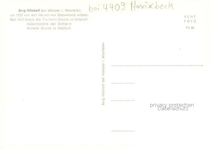 Muenster_Westfalen Burg Huelshoff Geburtsstaette der Dichterin Annette Droste zu Huelshoff Muenster_Westfalen postalisch nicht gelaufen 1921-1965 Erhaltung siehe scans [WerneD78] WernPID7