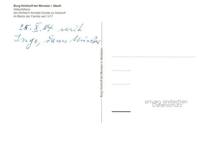Muenster_Westfalen Burg Huelshoff Wasserschloss Geburtshaus der Dichterin Annette Droste zu Huelshoff Muenster_Westfalen postalisch nicht gelaufen 1984 Erhaltung siehe scans [FriedD77] Frierer