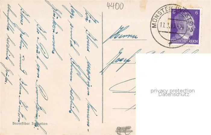 Muenster_Westfalen Kiepenkerl Denkmal Statue Bromsilber Imitation Muenster_Westfalen postalisch gelaufen 1943 Erhaltung siehe scans [FriedD77] Frierer