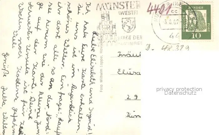 Muenster_Westfalen Longinusturm in den Baumbergen Aussichtsturm Muenster_Westfalen postalisch gelaufen 1962 Erhaltung siehe scans [FriedD77] Frierer