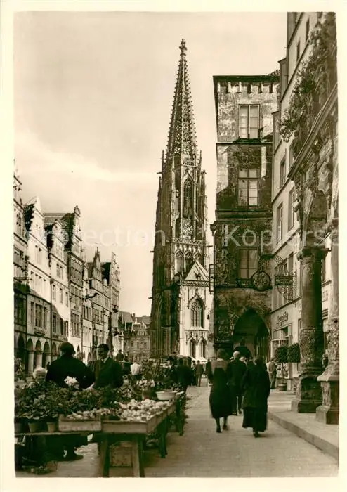 Muenster_Westfalen Prinzipalmarkt mit Lambertikirche Muenster_Westfalen postalisch nicht gelaufen 1921-1965 Erhaltung siehe scans [FriedD77] Frierer
