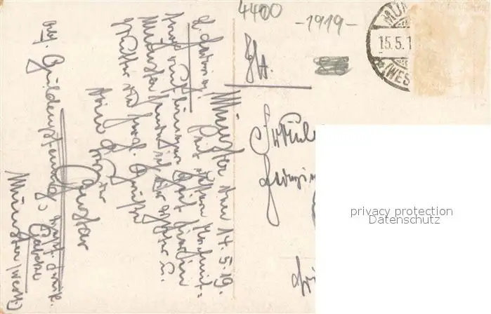Muenster_Westfalen Stadtpanorama mit Kirchen Stadtweinhaus Rathaus Dom Prinzipalmarkt Lambertikirche Muenster_Westfalen postalisch gelaufen 1919 Erhaltung siehe scans [FriedD77] Frierer