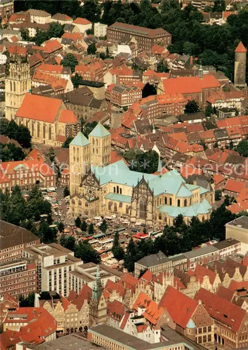 AK / Ansichtskarte Muenster_Westfalen Stadtzentrum mit St Paulus Dom ueberwasserkirche und Buddenturm Fliegeraufnahme Muenster_Westfalen