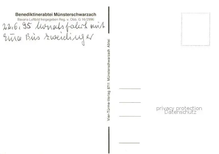 Muensterschwarzach Benediktinerabtei Fliegeraufnahme Muensterschwarzach postalisch nicht gelaufen 1995 Erhaltung siehe scans [WerneD78] WernPID7