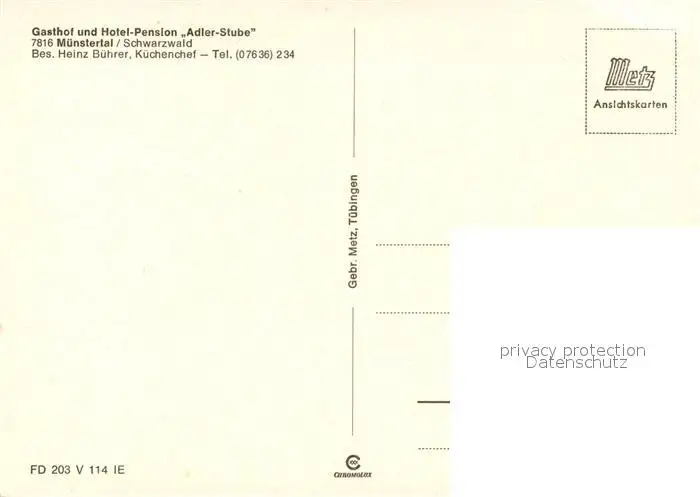 Muenstertal_Schwarzwald Adler Stube Gasthof und Hotel Gastraeume Muenstertal_Schwarzwald postalisch nicht gelaufen nach 1965 Erhaltung siehe scans [WerneD78] WernPID7