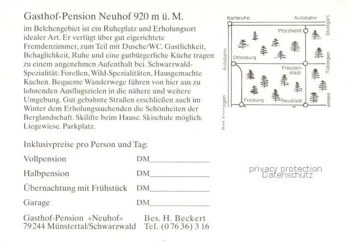 Muenstertal_Schwarzwald Gasthof Neuhof Gastraeume Schlepplift Muenstertal_Schwarzwald postalisch nicht gelaufen nach 1965 Werbekarte (keine Postkarte) Erhaltung siehe scans [WerneD78] Werbekarte (keine Postkarte) WernPID7