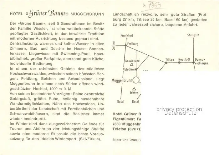 Muggenbrunn Hotel Gruener Baum Gaststuben Terrasse Muggenbrunn postalisch nicht gelaufen nach 1965 Werbekarte (keine Postkarte) Erhaltung siehe scans [WerneD78] Werbekarte (keine Postkarte) WernPID7