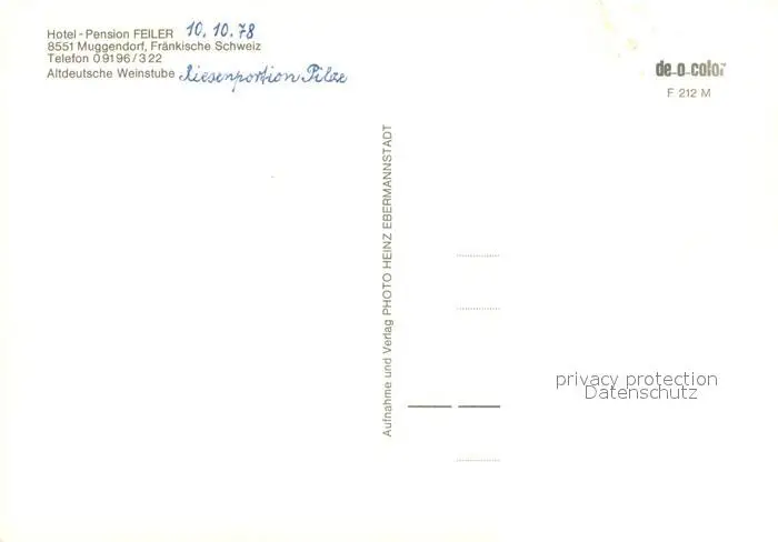 Muggendorf_Fraenkische_Schweiz Hotel Pension Feiler Altdeutsche Weinstube Muggendorf_Fraenkische postalisch nicht gelaufen 1978 Erhaltung siehe scans [FriedD77] Frierer