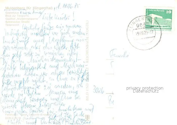 Muldenberg_Vogtland Gaestehaus Talsperre Gasthof Muldentalsperre Schoenecker Strasse Muldenberg_Vogtland postalisch gelaufen 1985 Erhaltung siehe scans [FriedD77] Frierer