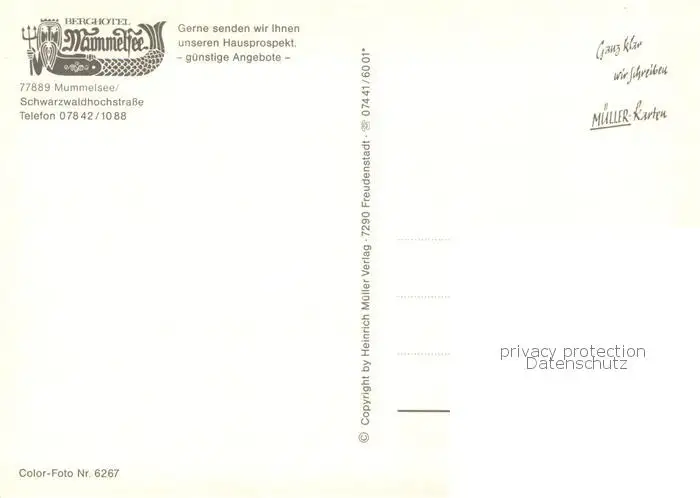 Mummelsee Berghotel Mummelsee Neptun Seepartien Mummelsee postalisch nicht gelaufen nach 1965 Erhaltung siehe scans [WerneD78] WernPID7