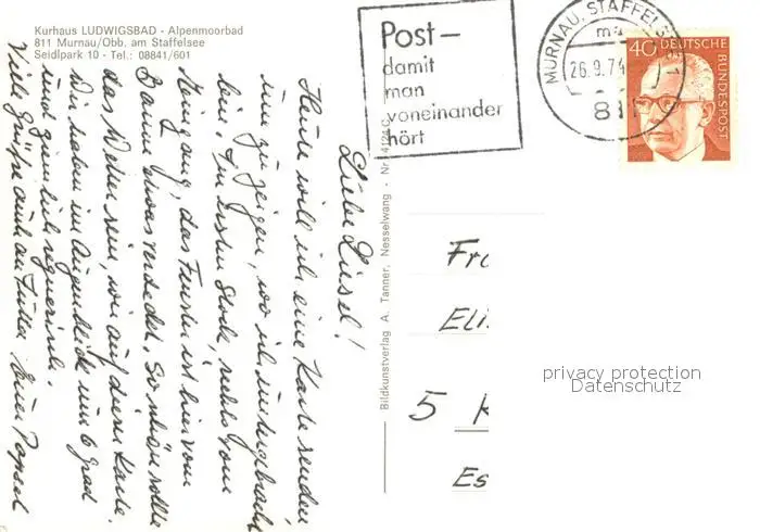 Murnau_Staffelsee Kurhaus Ludwigsbad Alpenmoorbad Alpenblick Murnau_Staffelsee postalisch gelaufen 1974 Erhaltung siehe scans [FriedD77] Frierer