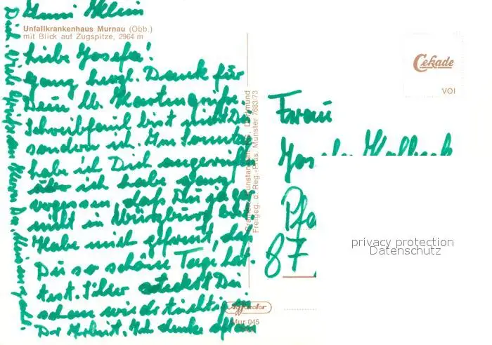 Murnau_Staffelsee Unfallkrankenhaus mit Blick auf die Zugspitze Wettersteingebirge Fliegeraufnahme Murnau_Staffelsee postalisch nicht gelaufen nach 1965 Erhaltung siehe scans [FriedD77] Frierer