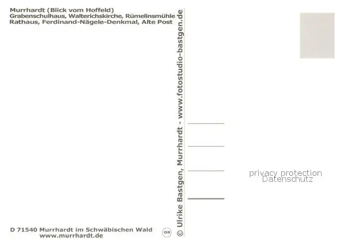 Murrhardt Panorama Grabenschulhaus Walterichskirche Ruemelinsmuehle Rathaus Ferdinand Naegele Denkmal Alte Post Murrhardt postalisch nicht gelaufen nach 1965 Erhaltung siehe scans [WerneD78] WernPID7