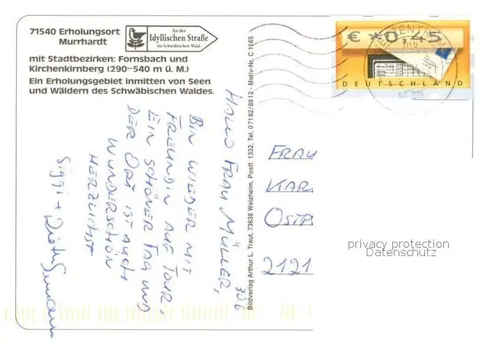 Murrhardt Walterichskapelle Fenster Am Rathaus Kirchenkirnberg Fornsbach Waldsee Wasserfall Murrhardt postalisch gelaufen nach 1965 Erhaltung siehe scans [WerneD78] WernPID7