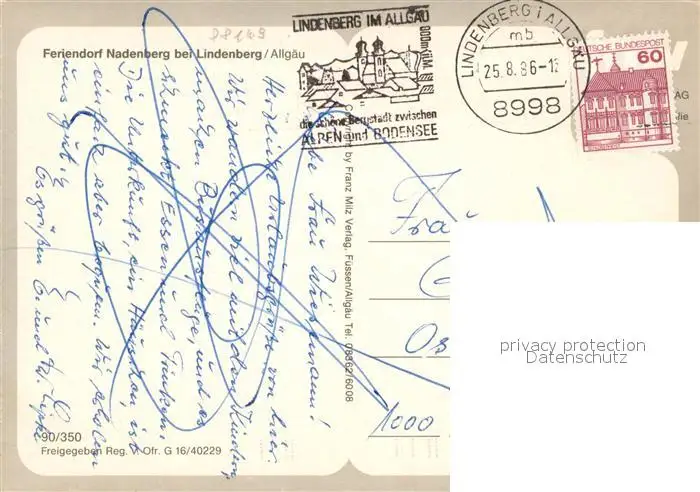 Nadenberg_Allgaeu Feriendorf Fliegeraufnahme Nadenberg Allgaeu postalisch gelaufen 1986 Erhaltung siehe scans [FriedD77] Frierer