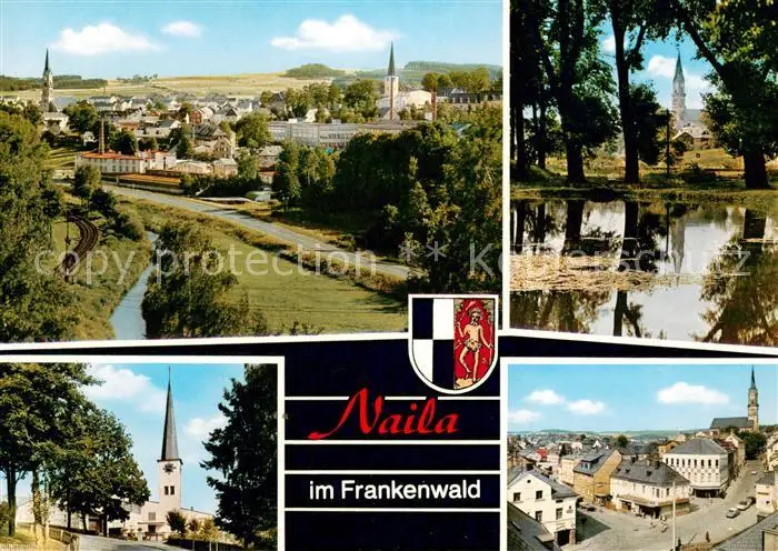 Naila Stadtpanorama Teich Motiv mit Kirche Naila postalisch nicht gelaufen 1975 Erhaltung siehe scans [FriedD77] Frierer