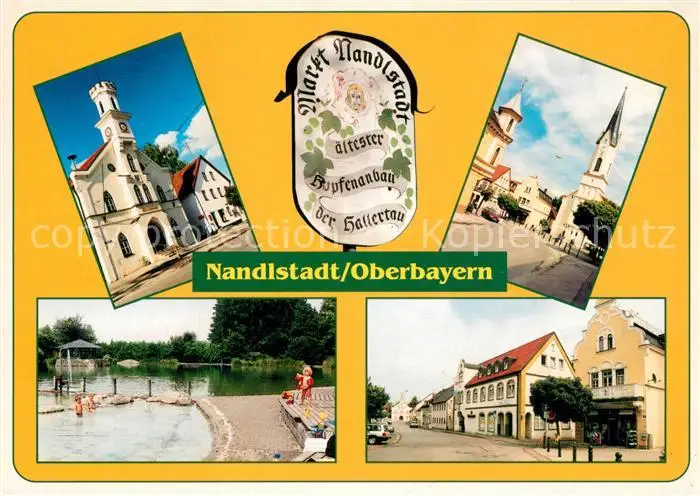 Nandlstadt Kategorie Alte Ansichtskarten Postkarten bx50966 Nandlstadt Rathaus Kirche Waldbad Marktstrasse Nandlstadt postalisch nicht gelaufen nach 1965 Erhaltung siehe scans [NatalD47]