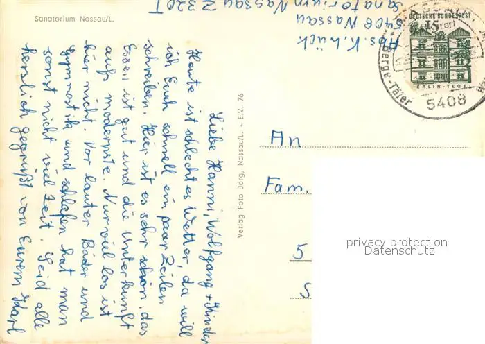 Nassau_Lahn Sanatorium Nassau_Lahn postalisch gelaufen nach 1965 Erhaltung siehe scans [LiesaD40] LiesID40