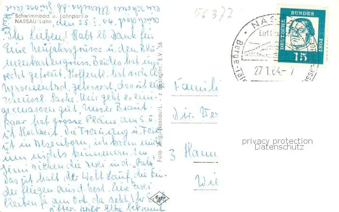 Nassau_Lahn Schwimmbad u. Lahnpartie Nassau_Lahn postalisch gelaufen 1964 Erhaltung siehe scans [LiesaD40] LiesID40