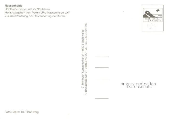 Nassenheide Dorfkirche heute und vor 90 Jahren Nassenheide postalisch nicht gelaufen nach 1965 Erhaltung siehe scans [FriedD77] Frierer