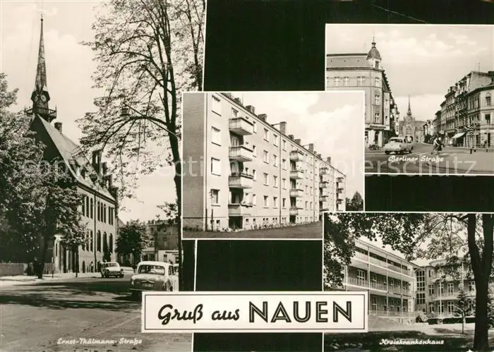 AK / Ansichtskarte Nauen_Havelland Ernst Thaelmann Strasse Wohnblock Plattenbauten Berliner Strasse Krankenhaus Nauen_Havelland