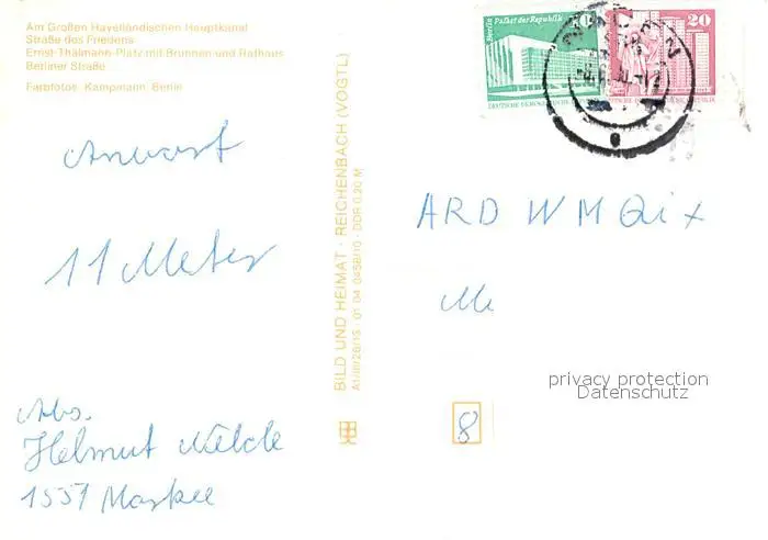 Nauen_Havelland Grosser Havellaendischer Hauptkanal Strasse des Friedens Ernst Thaelmann Platz Brunnen Rathaus Berliner Strasse Nauen_Havelland postalisch gelaufen 1990 Erhaltung siehe scans [FriedD77] Frierer