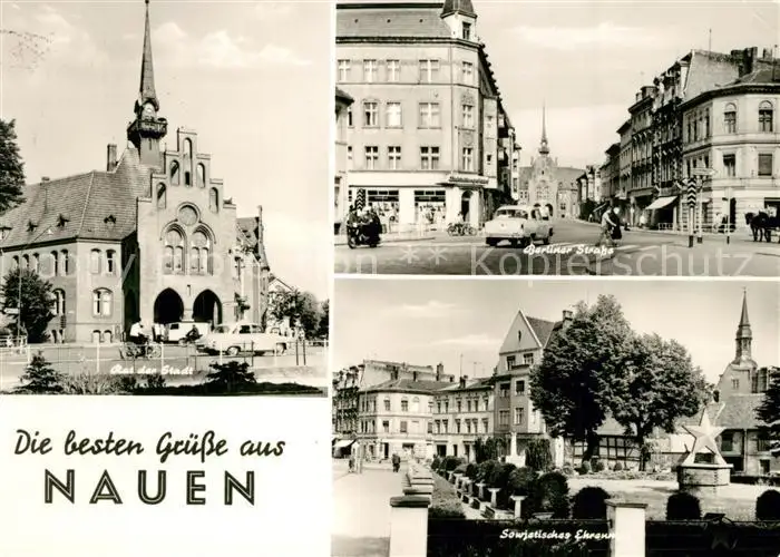 AK / Ansichtskarte Nauen_Havelland Rat der Stadt Berliner Strasse Sowjetisches Ehrenmal Nauen_Havelland