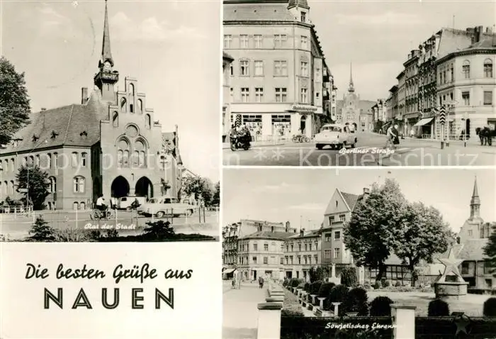 AK / Ansichtskarte Nauen_Havelland Rat der Stadt Berliner Strasse Sowjetisches Ehrenmal Nauen_Havelland
