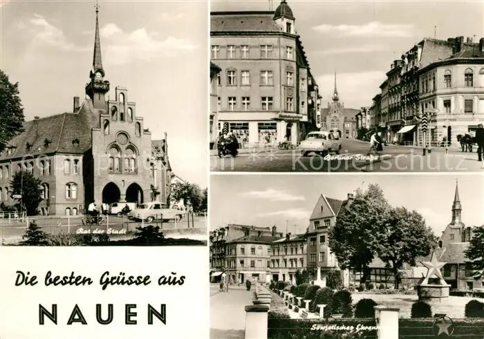 AK / Ansichtskarte Nauen_Havelland Rat der Stadt Berliner Strasse Sowjetisches Ehrenmal Nauen_Havelland