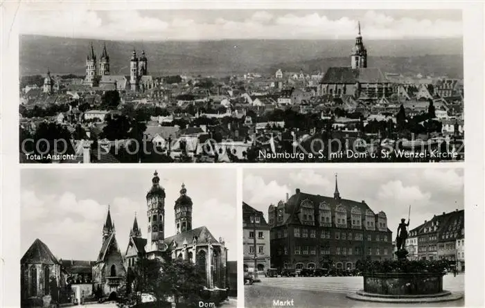 Naumburg_Saale Panorama mit Dom und St Wenzel Kirche Marktplatz Brunnen Naumburg_Saale postalisch gelaufen 1939 Erhaltung siehe scans [WerneD78] WernPID7