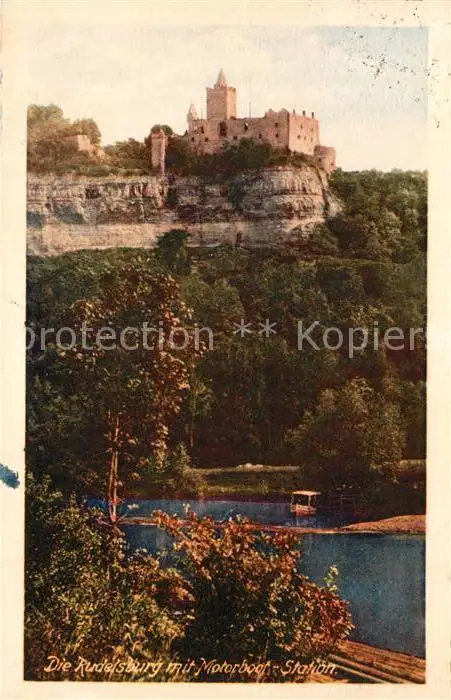 AK / Ansichtskarte Naumburg_Saale Rudelsburg mit Motorboot Station Naumburg_Saale