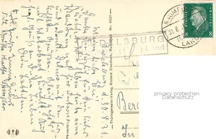 Naumburg_Saale Rudelsburg mit Motorboot Station Naumburg_Saale postalisch gelaufen 1931 Erhaltung siehe scans [FriedD77] Frierer
