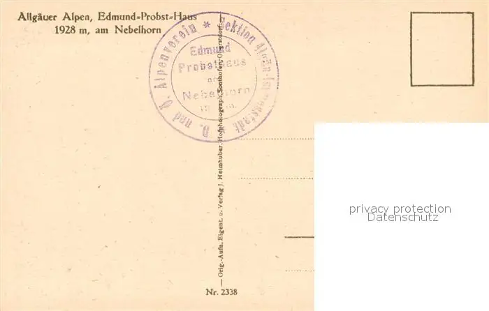 Nebelhorn Edmund Probst Haus Nebelhorn postalisch nicht gelaufen 1921-1965 Erhaltung siehe scans [LiesaD40] LiesID40