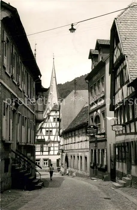 Neckargemuend Gasse Altstadt Fachwerkhaeuser Blick zur Kirche Neckargemuend postalisch gelaufen 1961 Erhaltung siehe scans [FriedD77] Frierer