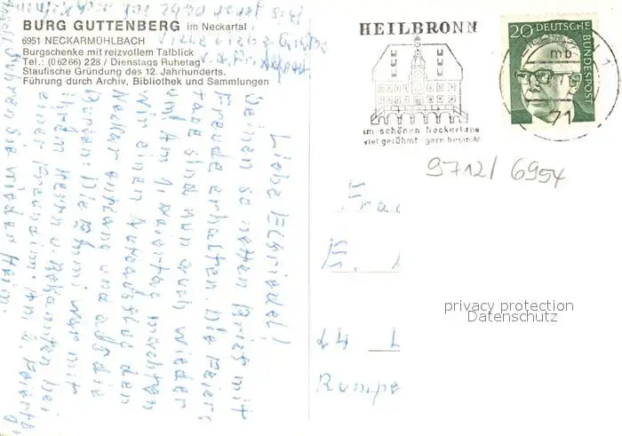 Neckarmuehlbach Fliegeraufnahme Burg Guttenberg Neckarmuehlbach postalisch gelaufen nach 1965 Erhaltung siehe scans [NatalD47] NataID47