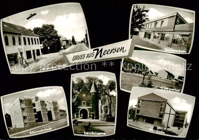 Neersen__Niederrhein Krefelder Strasse Altenwohnheim Schlosseingang Kreissparkasse Im Langenfeld Pfarrkirche postalisch nicht gelaufen 1921-1965 Erhaltung siehe scans [WerneD78] WernPID7