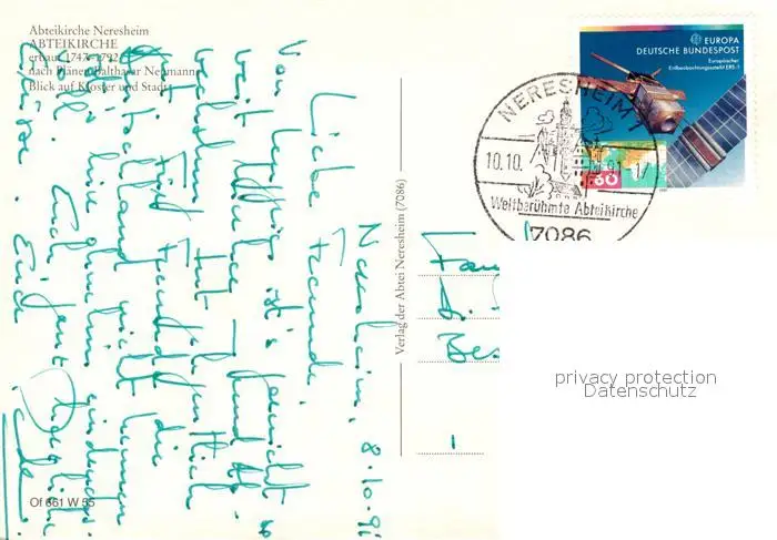 Neresheim Abteikirche Neresheim Panorama Neresheim postalisch gelaufen 1991 Erhaltung siehe scans [WerneD78] WernPID7