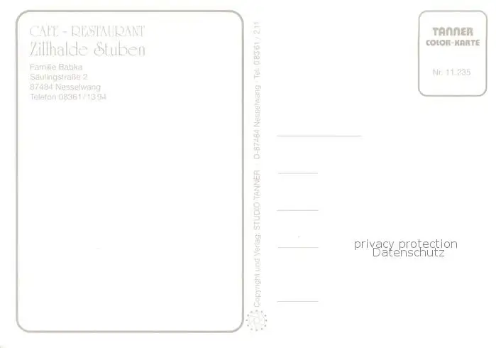 Nesselwang Cafe Restaurant Zillhalde Stuben Gaststube Zimmer Panorama Nesselwang postalisch nicht gelaufen nach 1965 Erhaltung siehe scans [WerneD78] WernPID7