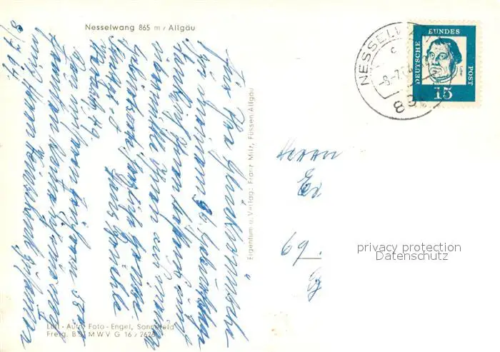 Nesselwang Kategorie Alte Ansichtskarten Postkarten bx53902 Nesselwang Fliegeraufnahme Nesselwang postalisch gelaufen 1964 Erhaltung siehe scans [NatalD47]