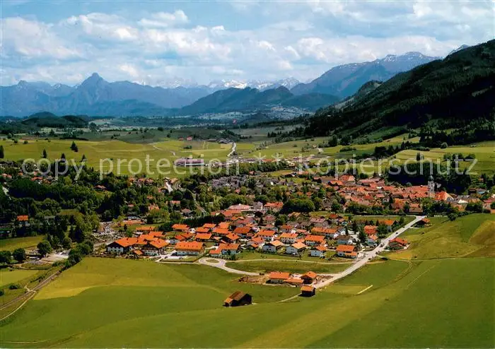Nesselwang Gesamtansicht mit Alpenpanorama Nesselwang postalisch gelaufen ca. 2000 Fliegeraufnahme Erhaltung siehe scans [FriedD77] Fliegeraufnahme Frierer