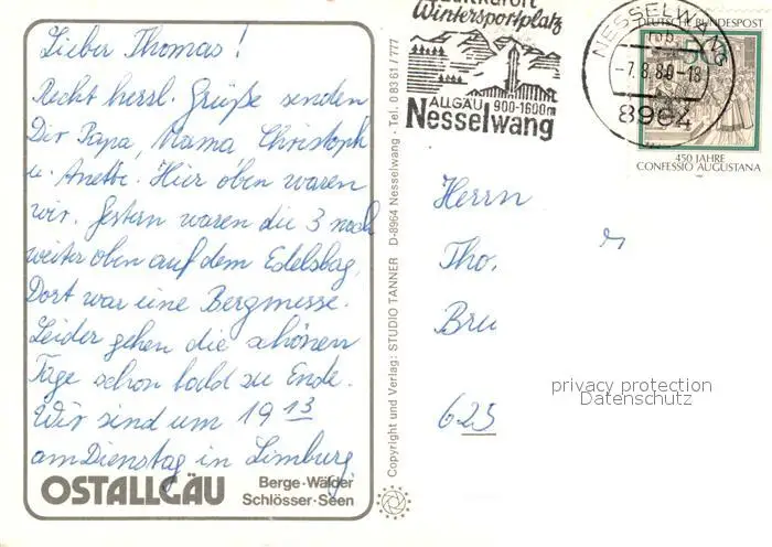Nesselwang Sportheim Boeck Alpspitze Nesselwang postalisch gelaufen 1980 Erhaltung siehe scans [KathaD81] Kathoren
