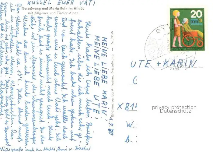 Nesselwang und Maria Rain Allgaeuer und Tiroler Alpen Fliegeraufnahme Nesselwang postalisch gelaufen 1970 Erhaltung siehe scans [FriedD77] Frierer