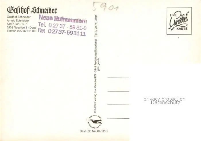 Netphen Gasthof Schneider Gaststube Gaestezimmer Speisesaal Netphen postalisch nicht gelaufen nach 1965 Erhaltung siehe scans [WerneD78] WernPID7