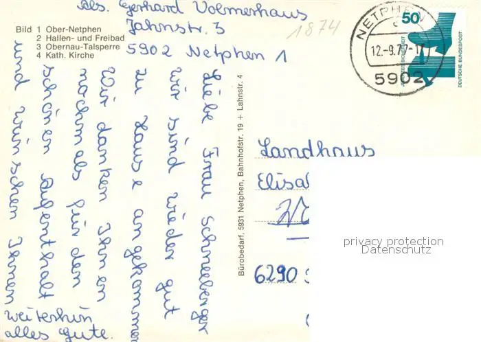 Netphen Panorama Hallen und Freibad Obernau Talsperre Kath Kirche Netphen postalisch gelaufen 1977 Erhaltung siehe scans [WerneD78] WernPID7