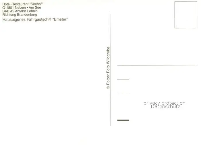 Netzen Hotel Restaurant Seehof am Netzener See Fahrgastschiff Emster Netzen postalisch nicht gelaufen nach 1965 Erhaltung siehe scans [WerneD78] WernPID7