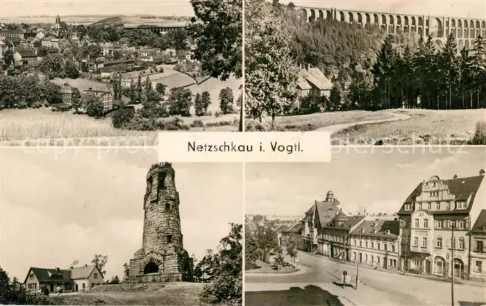 AK / Ansichtskarte Netzschkau Stadtansicht Panorama Viadukt Aussichtsturm Netzschkau
